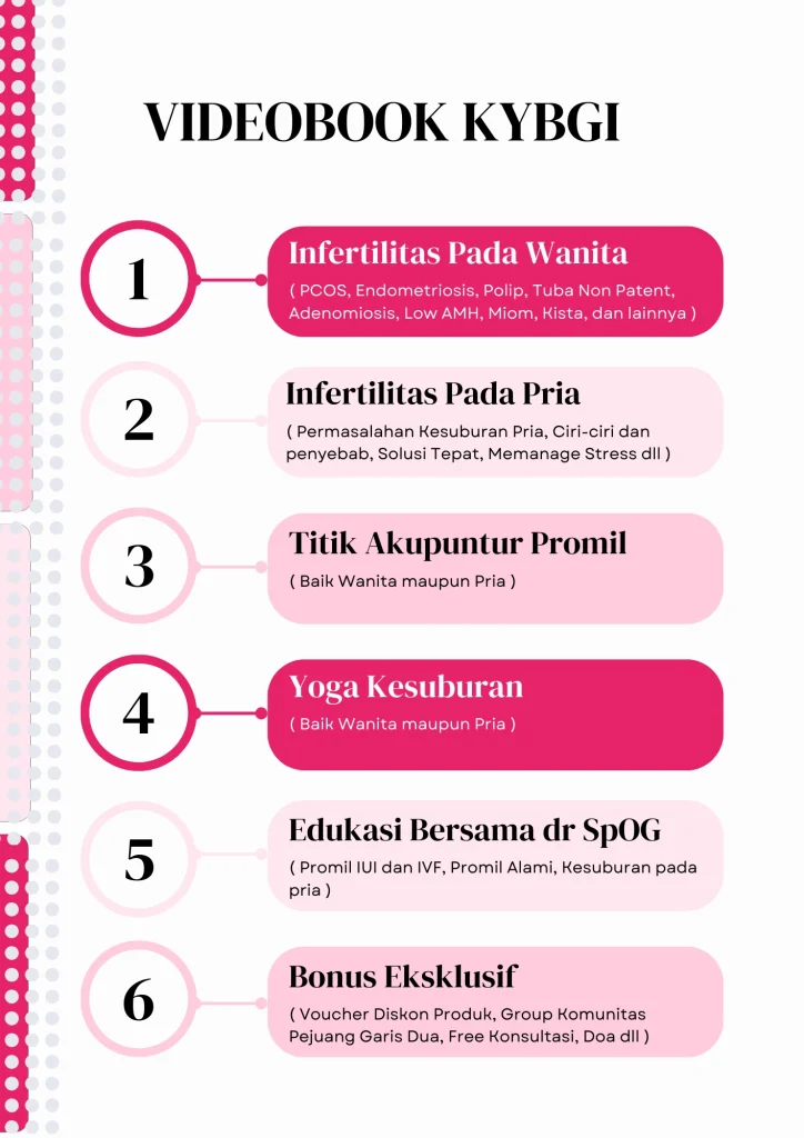 Videobook Know Your Body Goodbye Infertily (KYBGI) adalah sebuah Panduan Lengkap & tepat untuk segera mendapatkan Momongan.